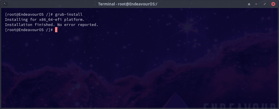 2. Chroot vào phân vùng cài đặt EndeavourOS trên máy