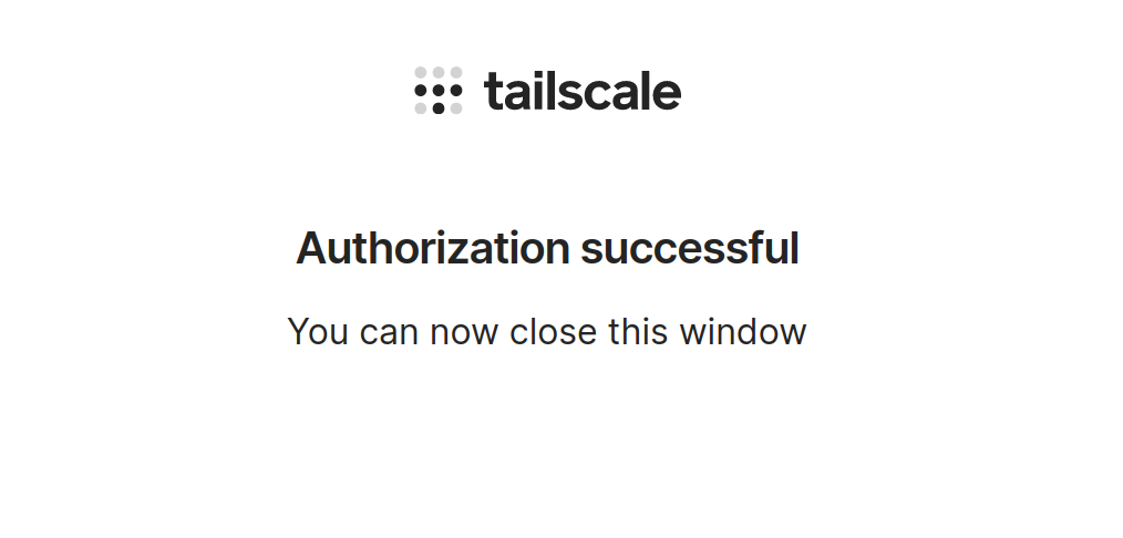 https://login.tailscale.com/a/7b6e22b9f748Sau khi đăng nhập thành công, trình duyệt sẽ hiện ra thông báo “Authorizatoin successful”. Đồng thời trong Terminal cũng sẽ hiện ra thông báo Success.