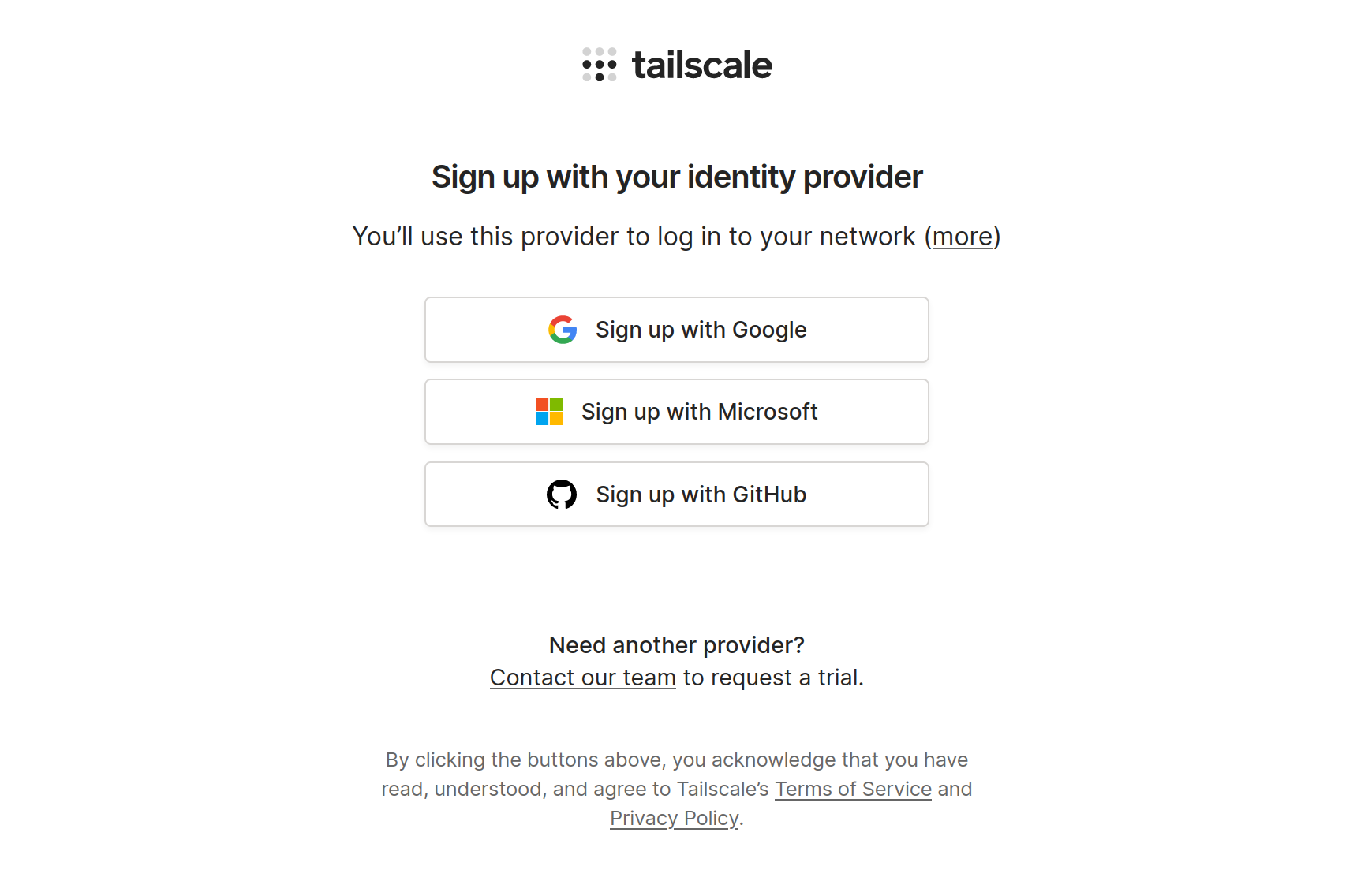 Để có thể sử dụng Tailscale, đầu tiên cần phải đăng ký tài khoản: https://login.tailscale.com/start