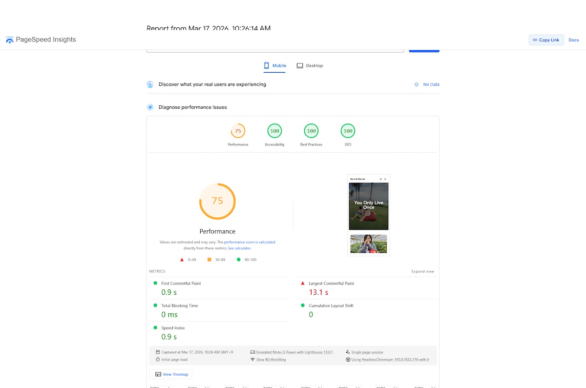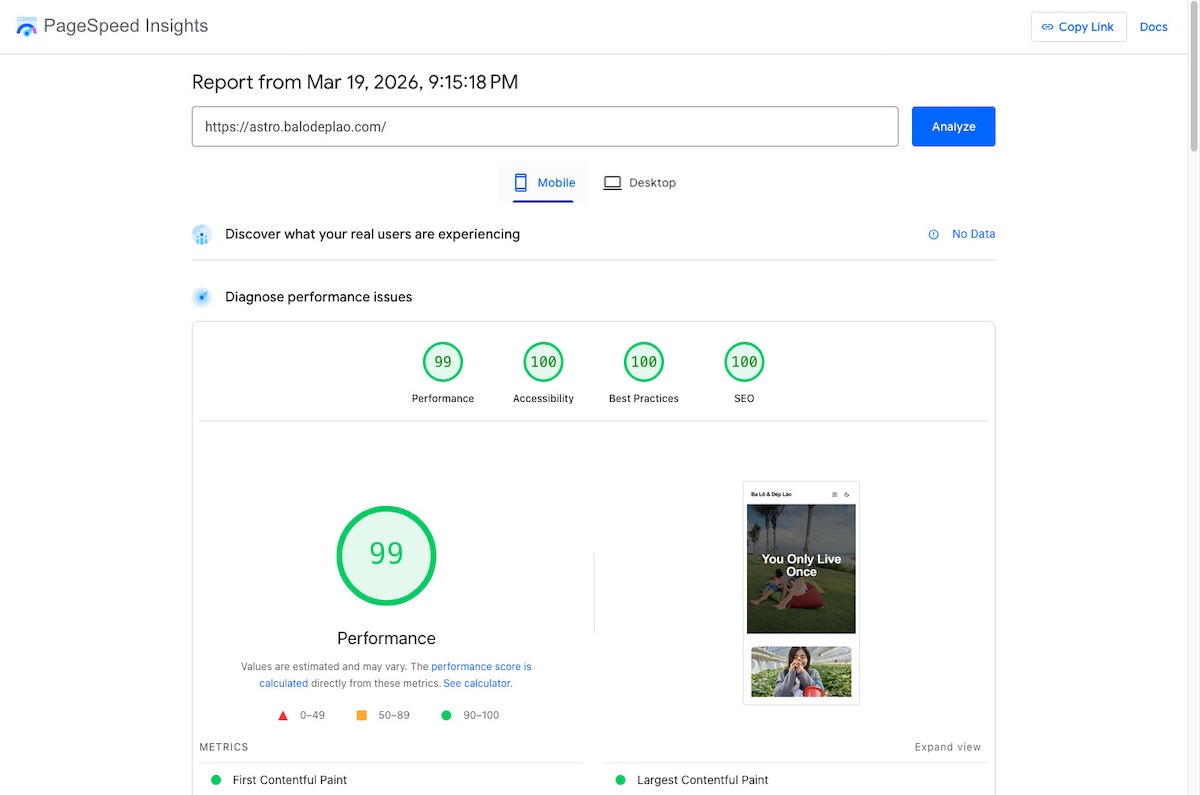 Sau khi hoàn thành bước 3 này, mình đã giải quyết được 2 vấn đề nêu ở đầu bài. Còn vấn đề 3: responsive image, trên thực tế có thể bỏ qua vì nó không ảnh hưởng đáng kể. Nhưng đã tiện tay tối ưu rồi thì nên làm luôn cho tới.