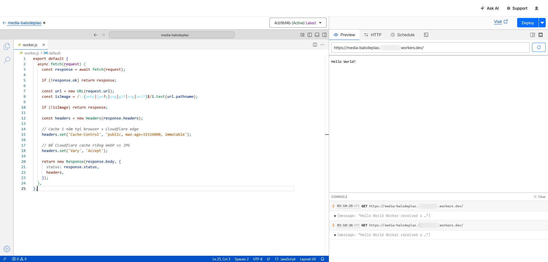 III. Thiết lập Cloudflare Worker set cache headers