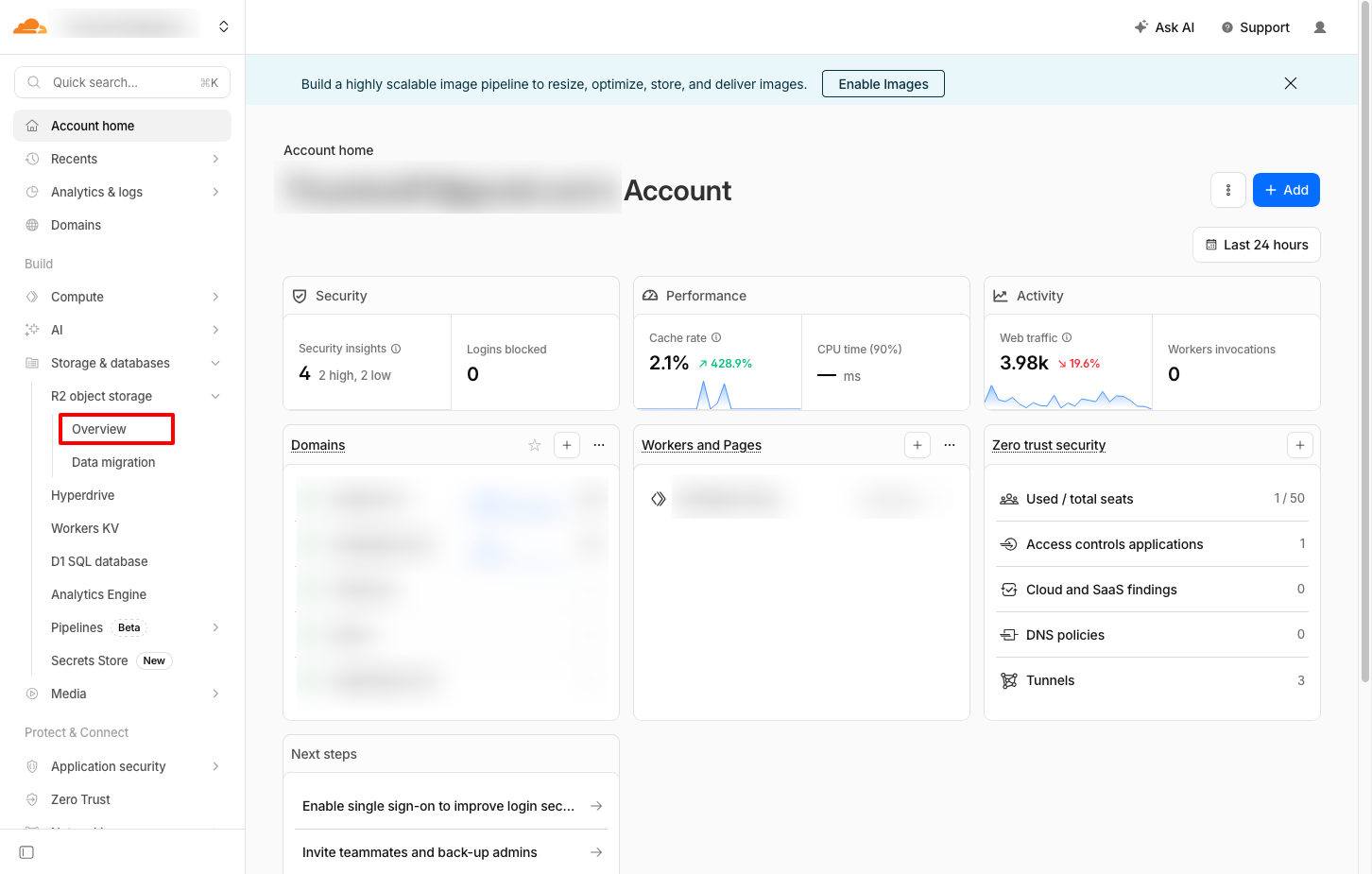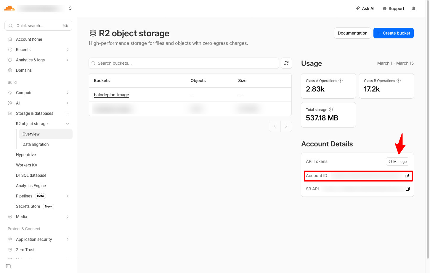 Truy cập vào Cloudflare Dashboard và truy cập vào phần R2 Object Storage